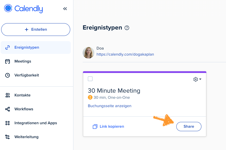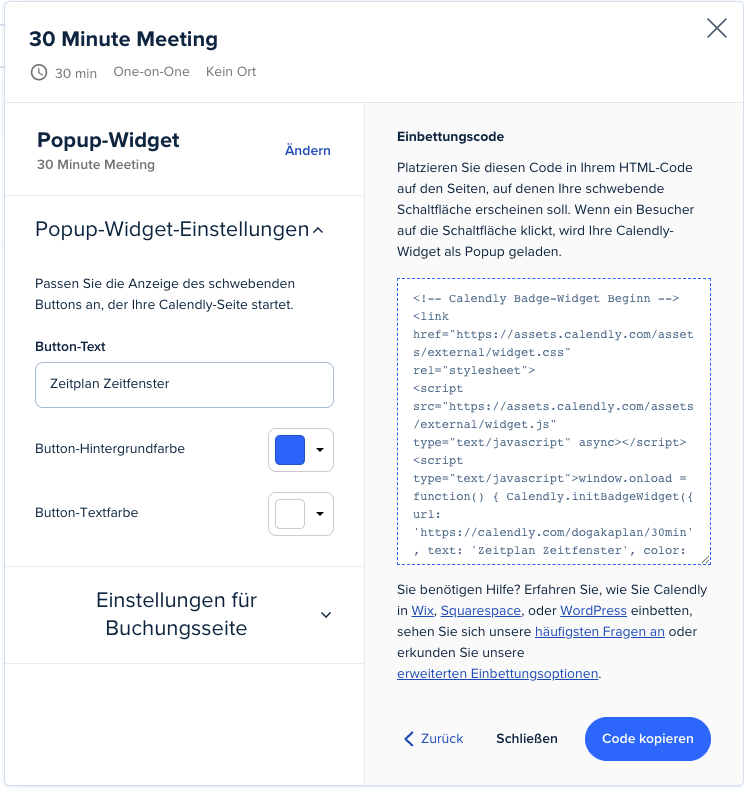 - Hole dir deinen Calendly-Link oder Einbettungscode