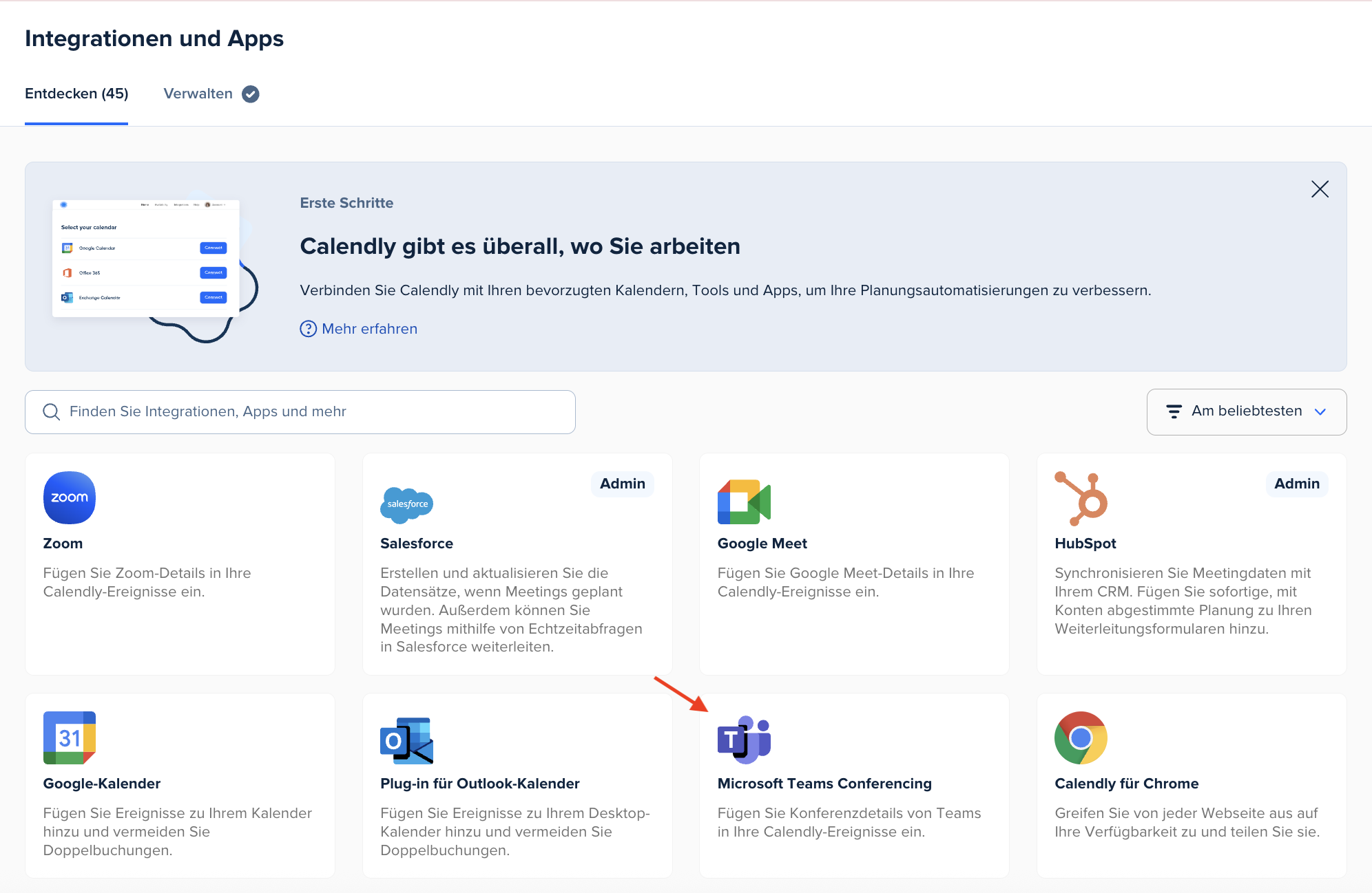 - Hier findest du alle verfügbaren Integrationen, einschließlich der Microsoft Teams-Option