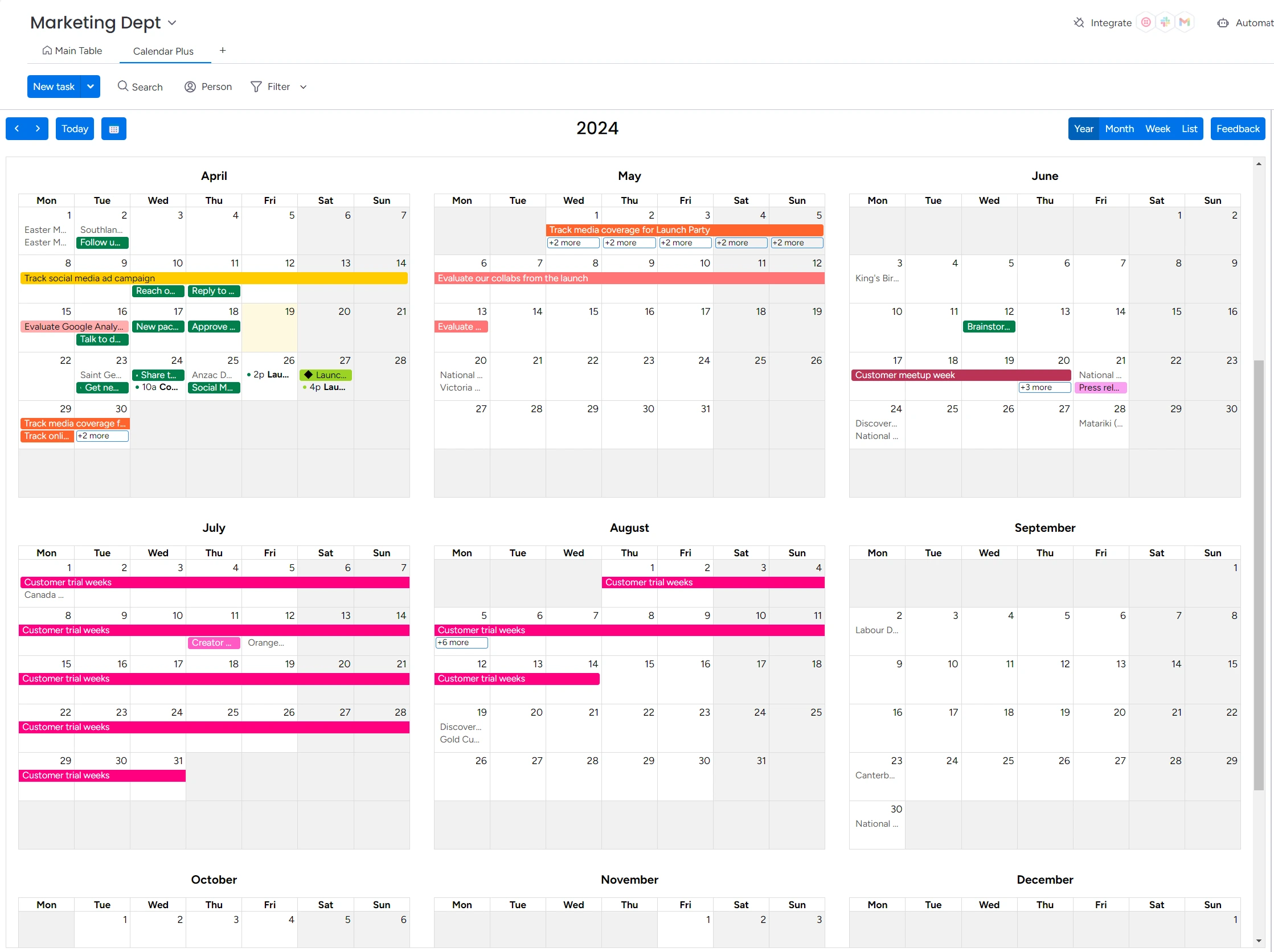 Teamup überzeugt durch seine außergewöhnliche Anpassungsfähigkeit. Die Plattform bietet 12 verschiedene Ansichten, von klassischen Kalenderlayouts über Timeline und Scheduler bis hin zur Tabellenansicht. Diese Flexibilität ermöglicht es jedem Teammitglied, die für seine Aufgaben optimale Perspektive zu wählen.