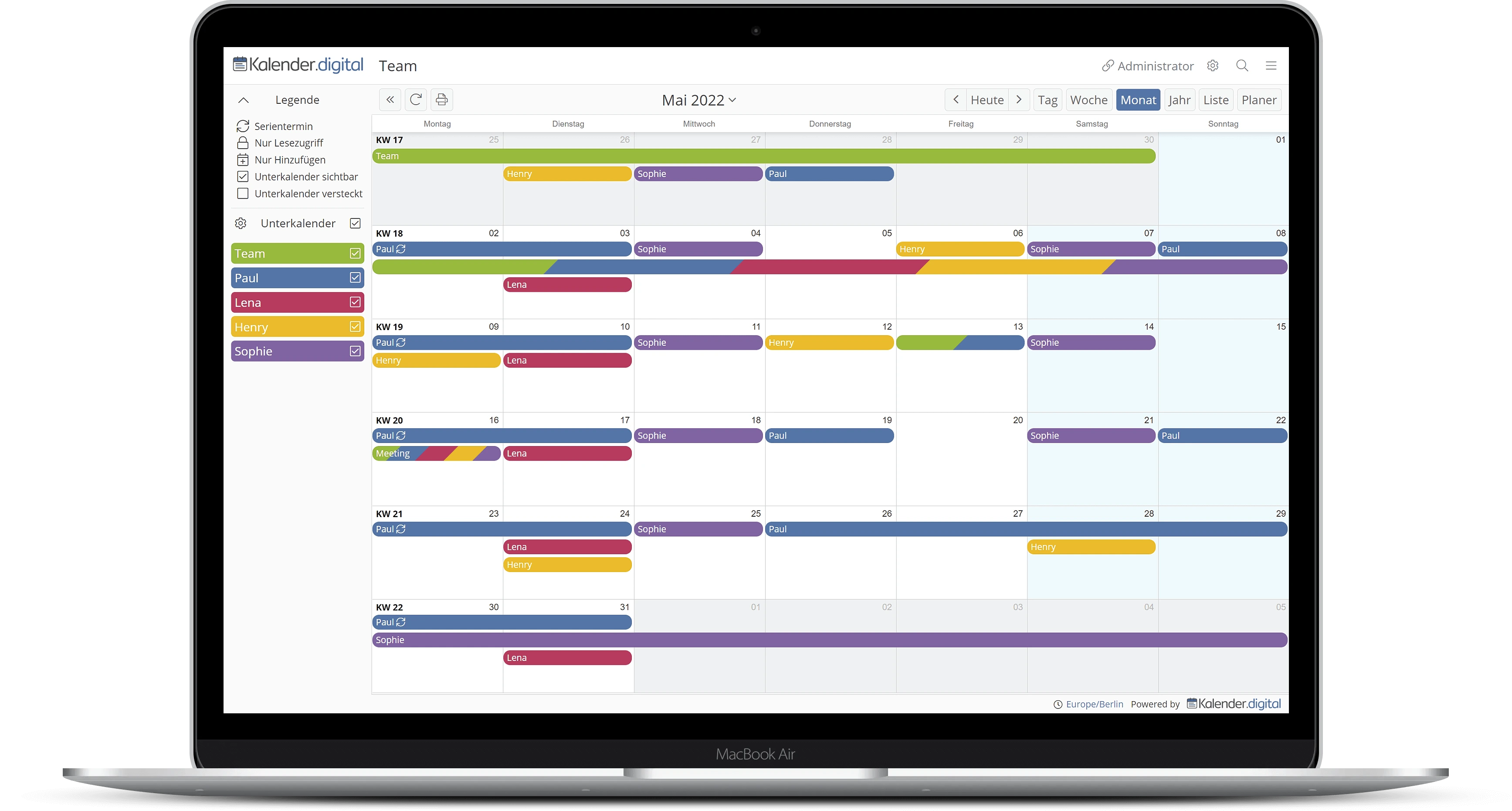 - Unbegrenzte Unterkalender und Zugriff-Links