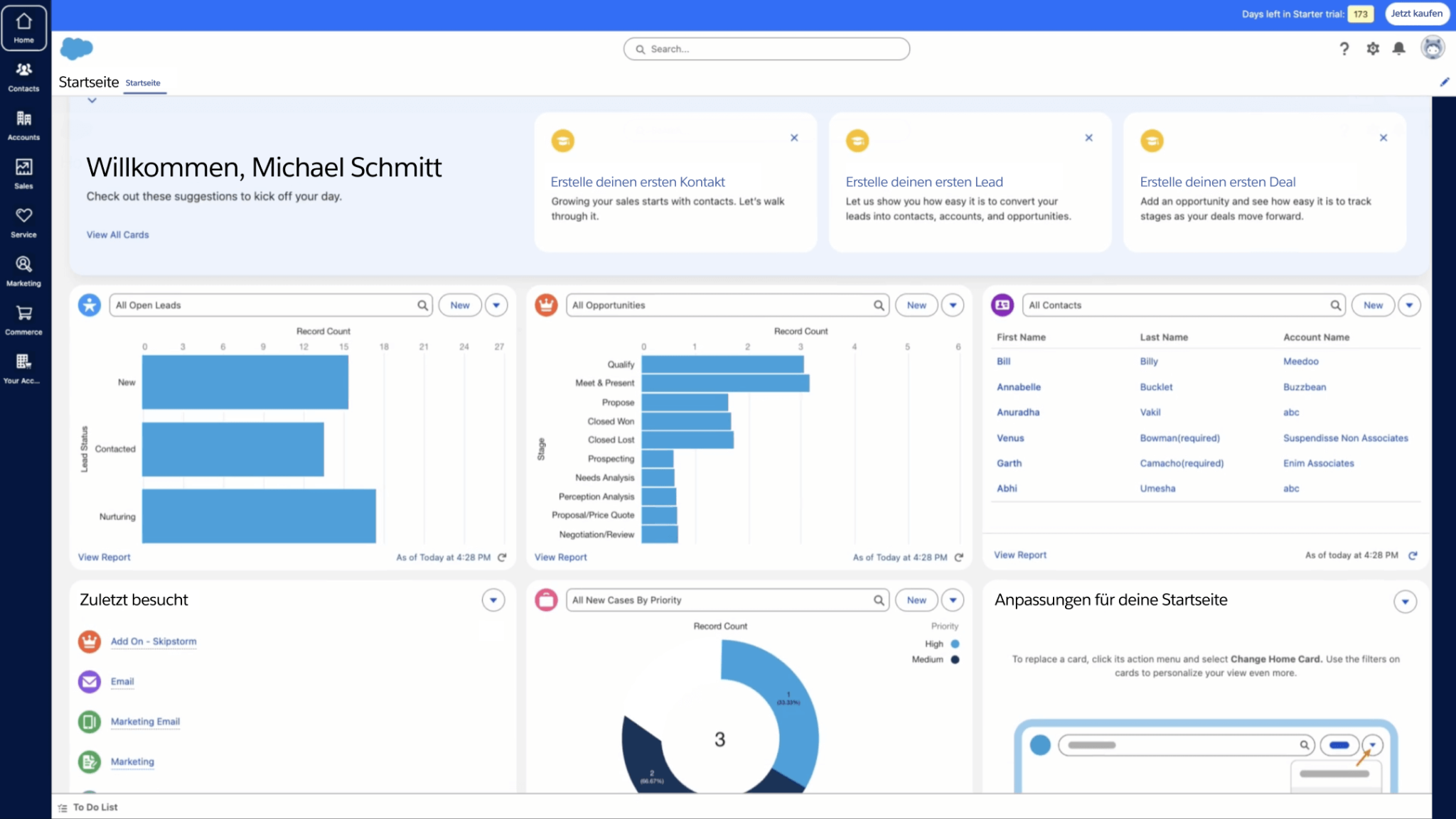 Salesforce ist der unangefochtene Marktführer im CRM-Bereich mit über 150.000 Unternehmen weltweit. Die Plattform bietet maximale Leistung für Organisationen mit entsprechenden IT-Ressourcen und eigenen Entwicklern. Der Funktionsumfang ist beachtlich - von KI-gestützter Marketing-Automation bis hin zu detaillierten Analyse-Tools ist alles möglich.