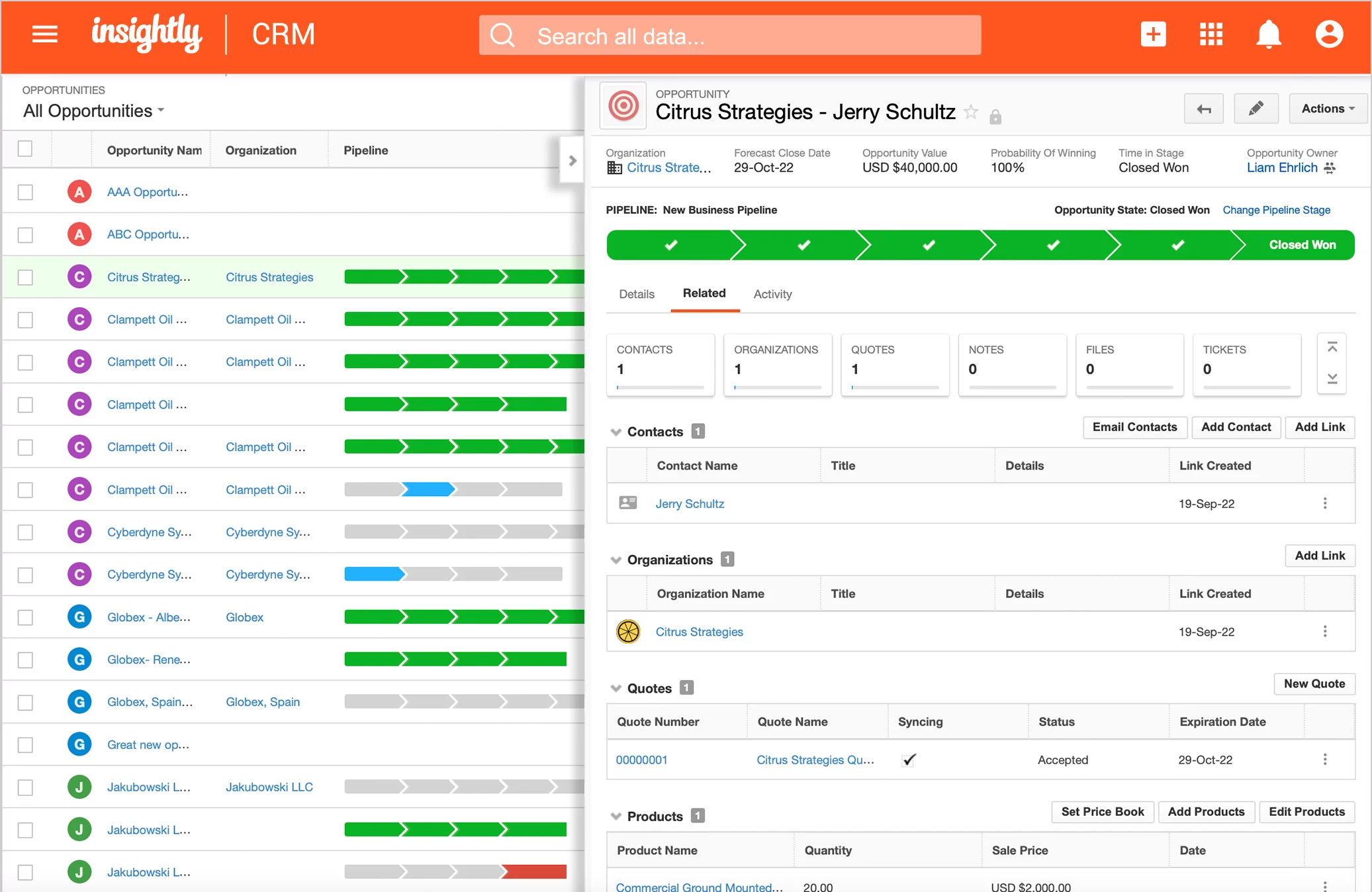 Insightly ist ein CRM-System, das sich auf die Integration von Vertriebs- und Projektmanagement konzentriert. Das Tool eignet sich besonders für Unternehmen, die einen ganzheitlichen Ansatz für ihre Kundenbeziehungen suchen.