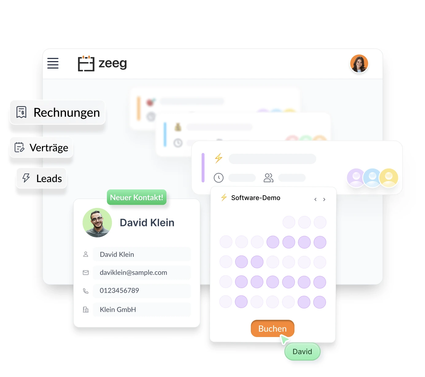 Mit Zeeg verwaltest du nicht nur deine Kundenkontakte zentral, sondern verwandelst jeden gebuchten Termin automatisch in einen qualifizierten Lead. Als Hubspot Alternative überzeugt Zeeg besonders durch die nahtlose Integration von Terminplanung und Kundenmanagement, wodurch du deine Conversion-Rate vom ersten Kontakt bis zum Abschluss deutlich verbesserst.