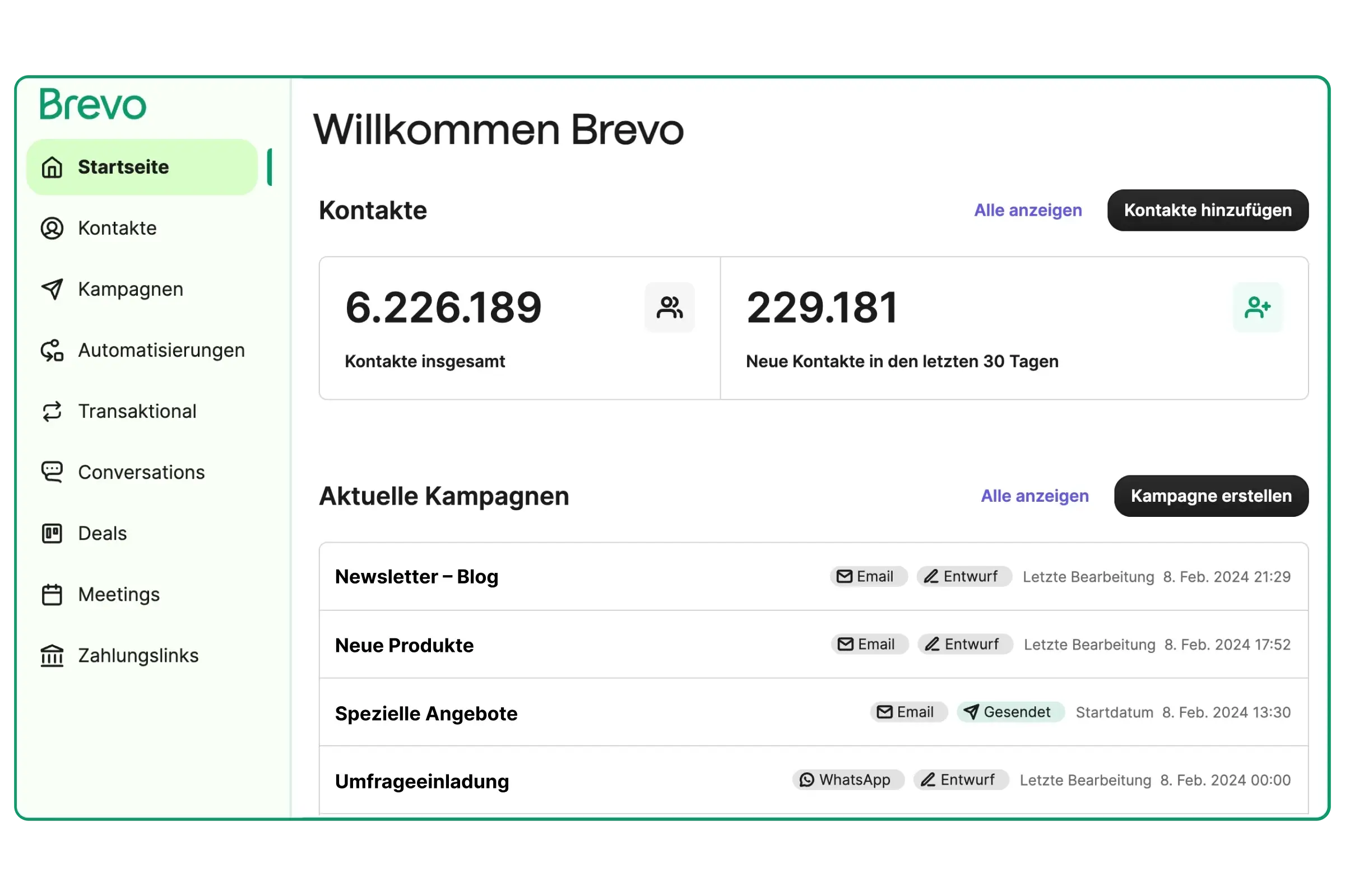 Brevo ist eine beliebte HubSpot Alternative, vor allem für Unternehmen, denen europäische Datenschutzstandards wichtig sind. Die Plattform verbindet CRM-Funktionen mit starkem E-Mail Marketing und vielseitigen Automatisierungen. Dank fairer Preise und modularer Struktur eignet sich Brevo besonders für Teams, die ihre Kundenkommunikation in einem einzigen Tool bündeln wollen.