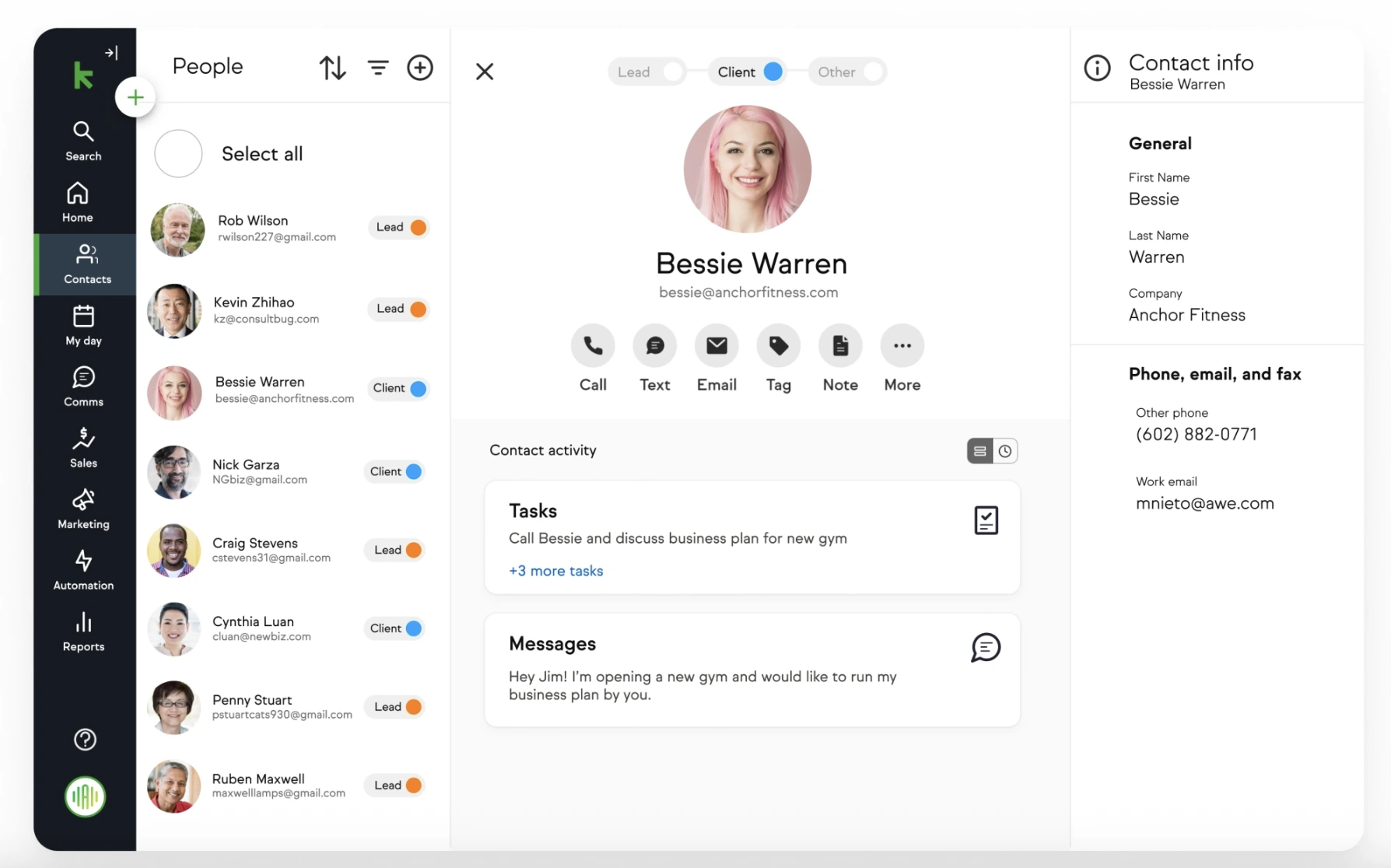Die Keap Business Line bietet eine dedizierte Geschäftstelefonnummer, über die auch SMS versendet werden können. Diese Funktion trennt geschäftliche von privaten Kommunikationen und verleiht kleinen Unternehmen ein professionelleres Auftreten.