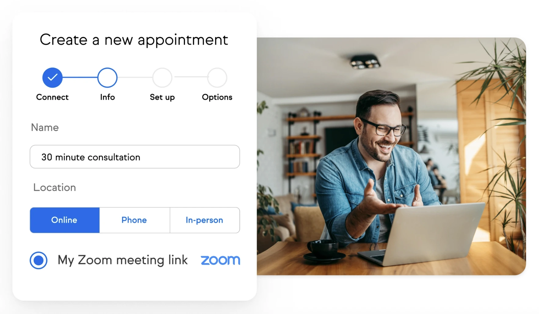 Die Buchungsseiten lassen sich an dein Corporate Design anpassen und können verschiedene Terminarten anbieten. Für kostenpflichtige Beratungen ist eine Vorab-Zahlung über integrierte Payment-Gateways möglich.