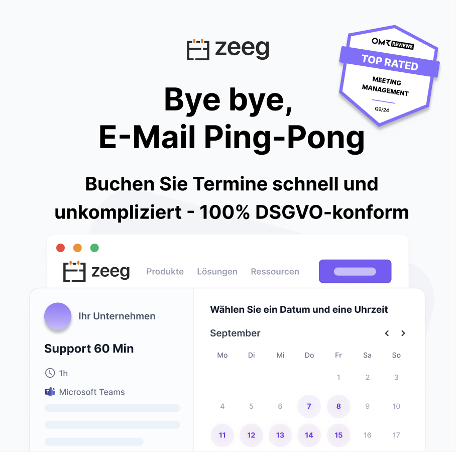 Im dynamischen B2B-Bereich kann eine effiziente Terminplanung den entscheidenden Unterschied ausmachen. Hier bietet Zeeg als DSGVO-konforme Schedulinglösung speziell für B2B-Unternehmen einen wertvollen Wettbewerbsvorteil.