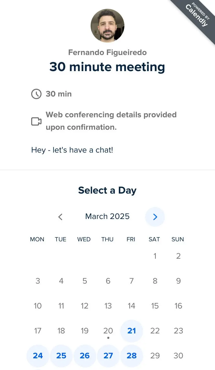 With inline embed, Calendly appears directly within your webpage content. This integration makes scheduling feel like a natural part of your site.
