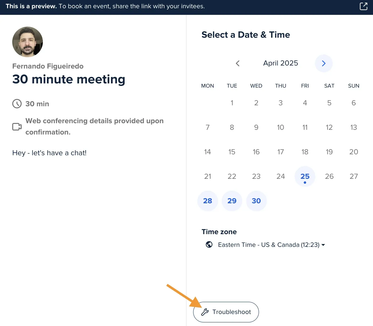 The fastest way to identify why Calendly is not showing availability is to use the built-in troubleshooting tool. Here's how to access it: